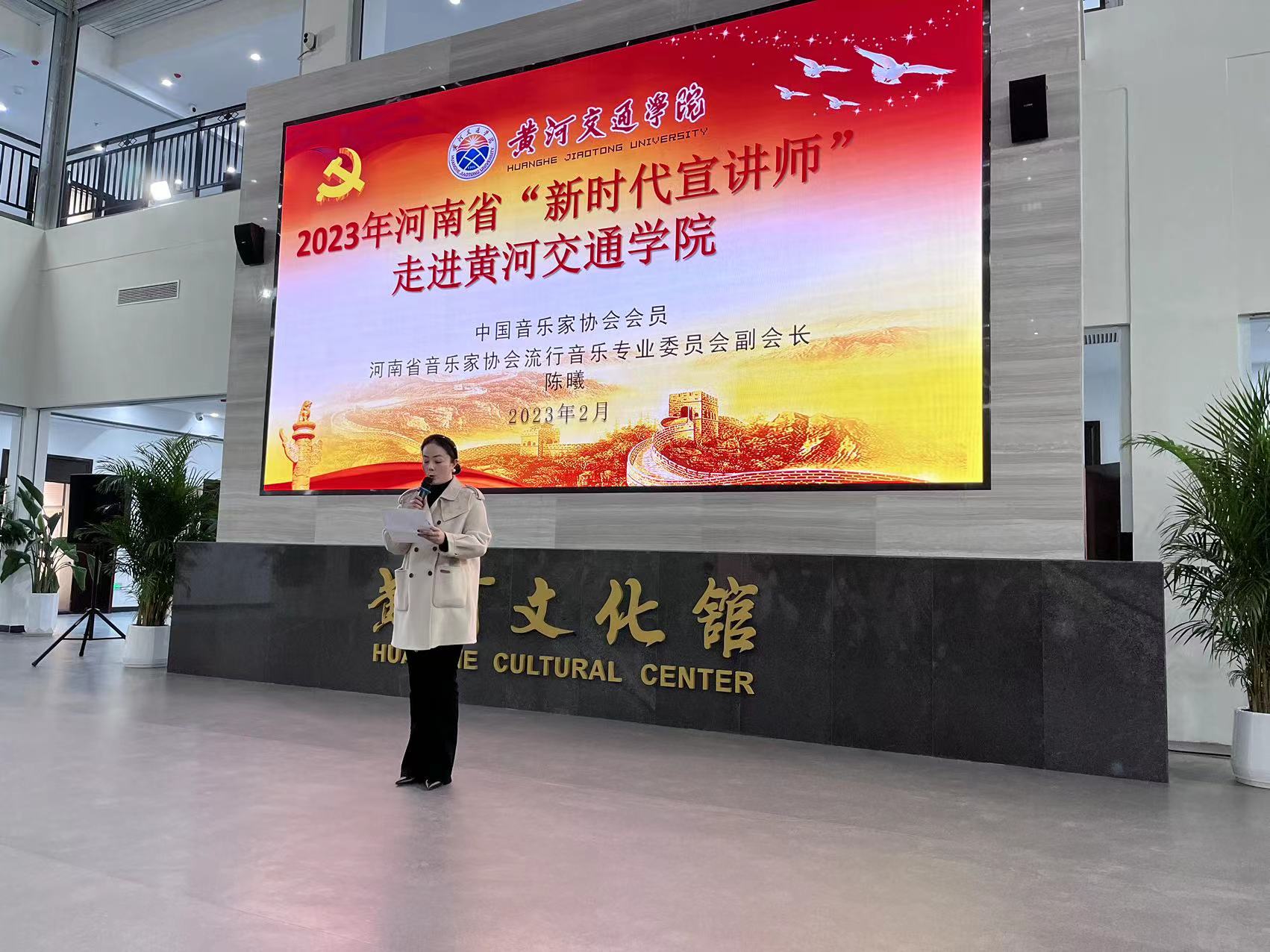 2月28日晚上7点,2023年河南省“新时代宣讲师”志愿服务活动走进beat365中文官网。中国音乐家协会会员、河南省音乐家协会流行音乐专业委员会副会长、新时代宣讲师陈曦在beat365中文官网东校区黄河文化馆1楼给师生们进行了一场深入浅出、精彩生动的宣讲。