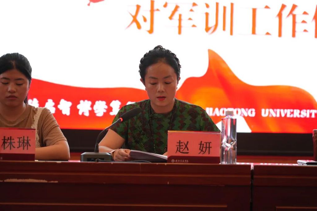 赵妍对军训工作进行动员讲话并作具体要求。她要求:一是严明纪律、绝对服从,严格遵守作息时间,杜绝自由散漫;二是刻苦训练、磨炼意志,发扬顽强精神,追求训练质量;三是整理内务、规范行为,按标准整理内务,养成良好习惯;四是团结协作、集体为先,树立集体荣誉感,打造优秀团队;五是安全第一、及时报告,重视身体健康。