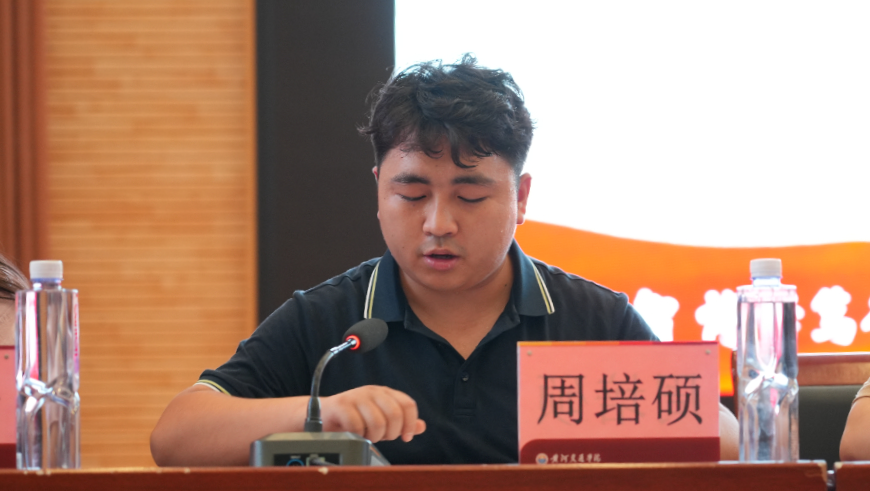 团委书记周培硕宣读了beat3652025级新生入学教育实施方案,强调要充分重视新生入学教育工作,以系统完备、精准高效的“导航工程”为新生定向护航,助力其迅速完成角色转换、深度融入校园生活。
